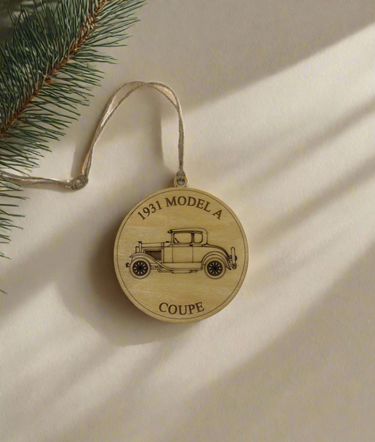 Ford Model A, 1957 Chevy, Mustang Handcrafted Laser-Engraved Christmas Ornament (1 piece)