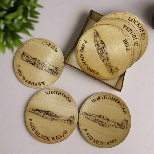 World War II American Airplane Fighter Collection Coaster Set (Set of 6)